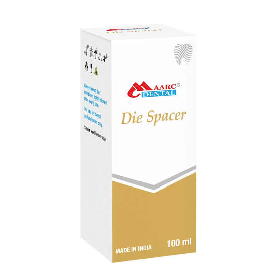 MAARC Die Spacer is a material used in the dental laboratory for creating a uniform space between the die and the crown or bridge restoration. This material is typically used in crown and bridge work to ensure proper spacing for the cement or adhesive layer, allowing for an ideal fit and preventing tightness when the restoration is placed in the patient’s mouth.
