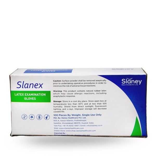 - Box contains 100 pieces of Slanex (SS0117) Powdered Latex Examination Gloves (Small).